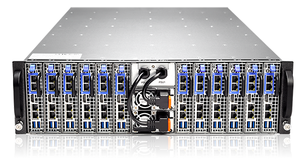 Gooxi S312-S24R微型刀片服务器系统与传统高性能计算设备的功耗,可以节省50%左右的电力,当采用Intel E3 1240L的处理器时,处理器功耗是25W,4核8线程,主频最高到3.0GHz,计算能力96Gflops,而一个E5-2620处理器功耗是80W, 主频最高到2.5GHz,计算能力120Gflops。以3U12节点来计算,CPU功耗25*12=300W,计算能力 12*96=1156Gflops;而3U双路E5来说,最多4个节点,8*120=960Gflops,CPU功耗为640W;总体算来,一半的功耗能 产生更多的计算能力。在整体计算来说,低功耗的E3处理器是最大的优势。现在,奥林匹斯之门 pp电子奥林匹斯之门S312 –S24R产品支持intel最新的XEON E3 V3产品,处理器能力比一代提升了44%之多,具有更高的计算能耗比。