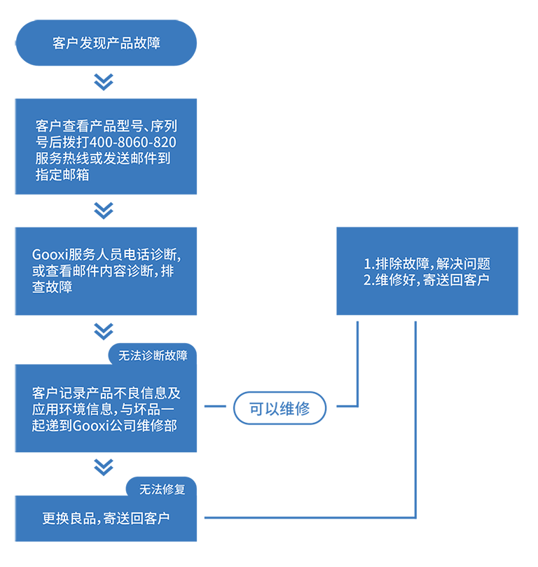 4. 配件更换服务(免费或收取成本费用由Gooxi专业工程师根据实际情况而定)